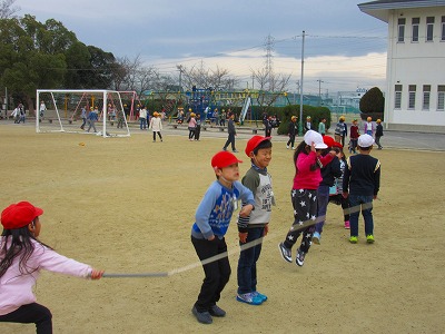 サニータイム、子どもたちは寒さに負けずいろいろな場所で、いろいろな遊びをしていました。子どもは風の子です。