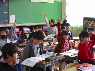 3年生が社会の学習でおじいさんやおばあさんの子どものころの遊びについて、どんな名前の遊びがあったのかを社会科ノートにまとめていました。「たこあげ」「こままわし」「たけうま」「なわとび」「めんこ」「まりつき」……など、挿絵から見つけることができました。