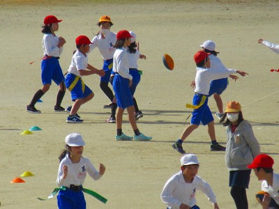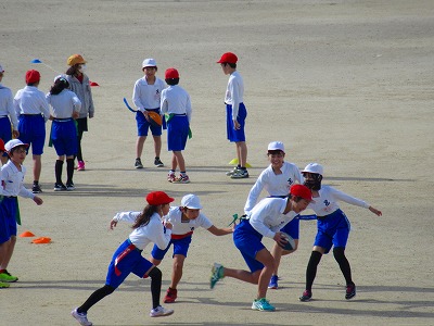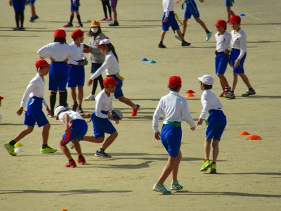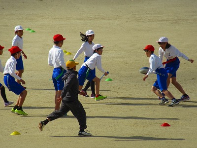 5年生が体育でタグラグビーのゲームに取り組んでいました。いつの間にかスピーディーなゲームができるようになっていました。ラグビーのワールドカップが日本で開催されるまで、およそ半年になりました。佐屋小でもラグビーが盛り上がっていました。