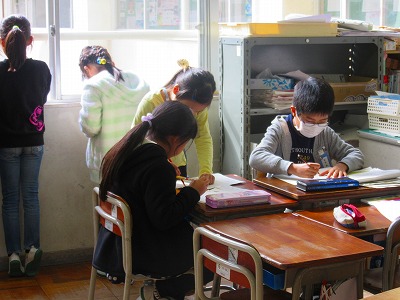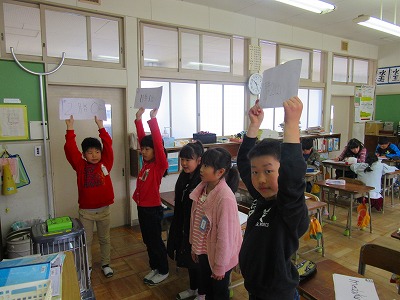 3年生が社会科や総合学習で学んできた昔のくらしについての発表会の練習をしていました。どうやら、いろいろな形態の発表がありそうです。とても楽しみになってきました。