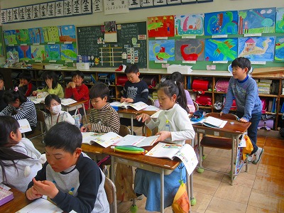 3年生が道徳の学習で親切な心について話し合いました。きっぷ売り場で困っている外国の人がいました。ぼくは「どうしたのですか」と声をかけました。自分のこれまでの行いと重ね合わせて、いろいろと考えを深めました。