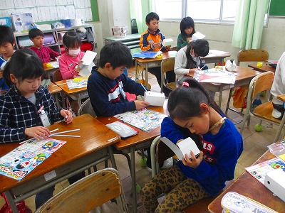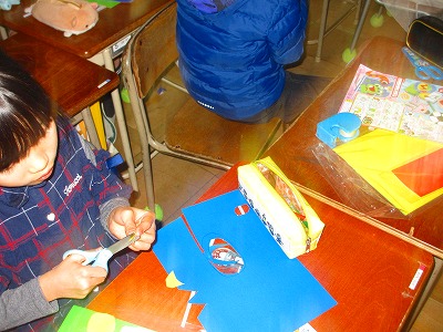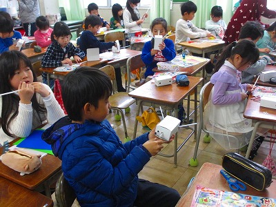 2年生が図画工作で「ストローでこんにちは」の作品を作っていました。ストローで動く仕組みを作り、穴をあけた箱に通します。どんな作品になるかとても楽しみですね。