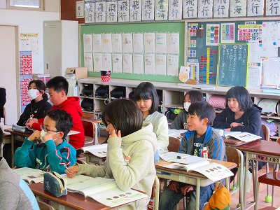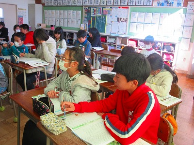 ⒌年生が道徳で「自然が守る力」について、話を読み深く考えました。一度ふんでしまうと元に戻るのに10年かかると言われている高山植物について理解しながら、大切な行動を考え合っていました。