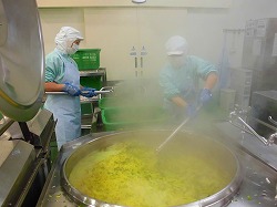 だんだん寒くなってきました。給食にも冬に味覚が登場します。ブロッコリーやカリフラワー、かぶを使ったポトフを作りました。かぶは、調理方法で食感が大きく変化する野菜です。子どもたちには、いろいろな調理方法で食材を食べてもらえるように献立を工夫しています。今日は、かぶのとろとろの食感を楽しんでください。