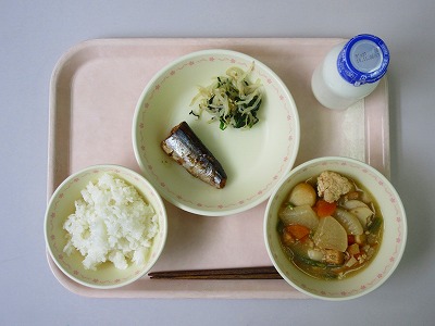 ご飯、牛乳、さんまの煮付け、ほうれん草のお浸し、大根のうま煮