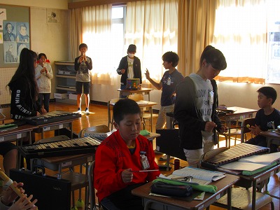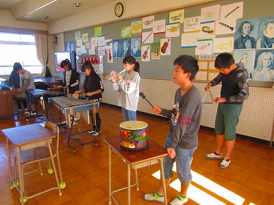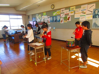 6年生が「ラバーズコンチェルト」のパート練習をした後、グループでの合奏を発表しました。グループの発表を聞くことで、それぞれの楽器の音色が響き合うことがよくわかりました。