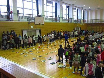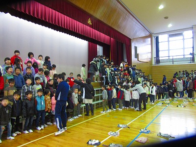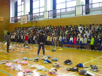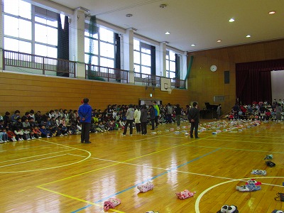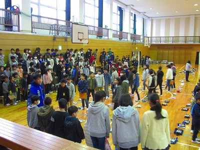 1月18日に発表する「全校合唱」の隊形作りを行いました。自分が体育館のどの場所で歌うのかを確認しました。600人を超える子どもたちが動くので大変ですが、みんなが教師の指示をよく聞いて行動できていました。