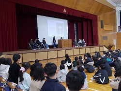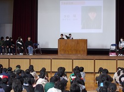 3人目は未来のために頑張りたいことについて発表しました。小学校では算数の分数や図工の作品作りに力を注いだそうです。中学校では社会科の歴史学習と部活にがんばりたいと発表しました。
