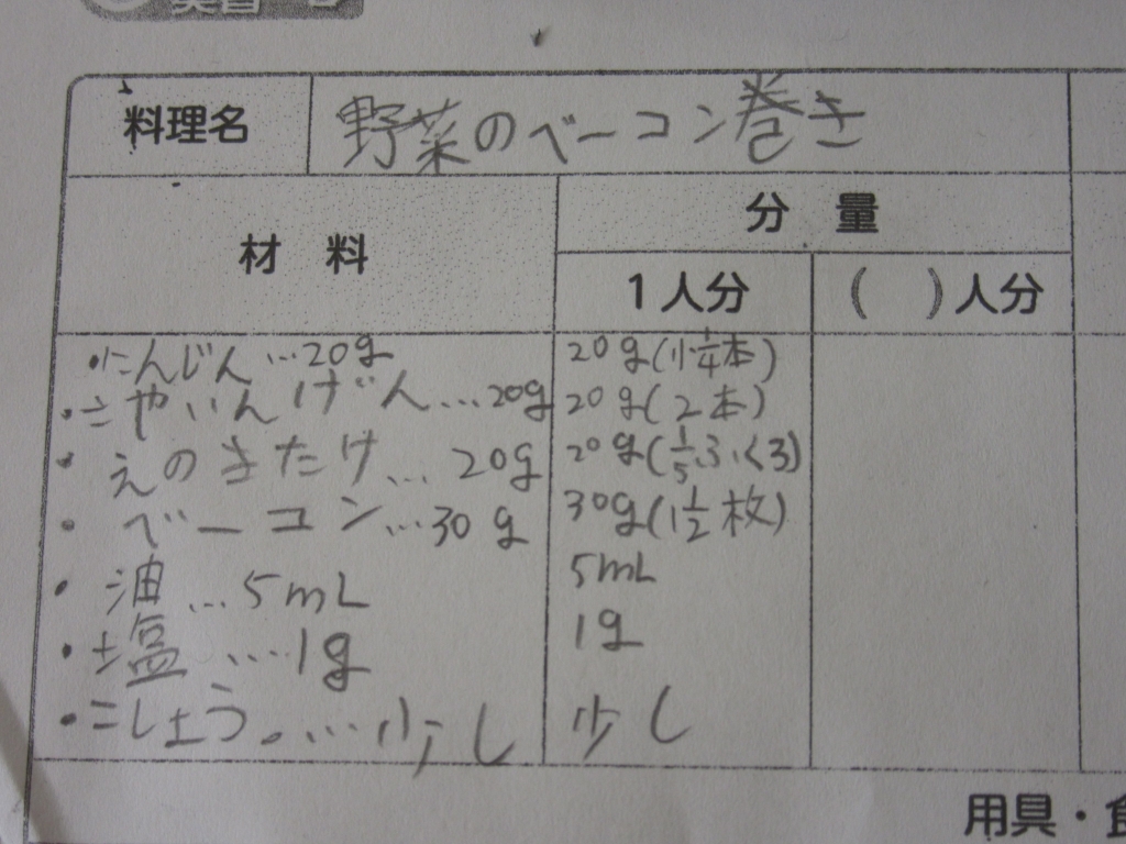 6年生が調理実習を控えて、自分が作りたい一人分の料理について考えていました。材料と分量を調べて、家庭科ノートにまとめていました。おいしく調理することをめざして、みんな意欲的に学んでいました。
