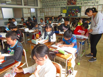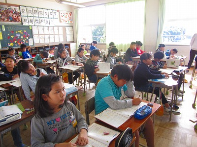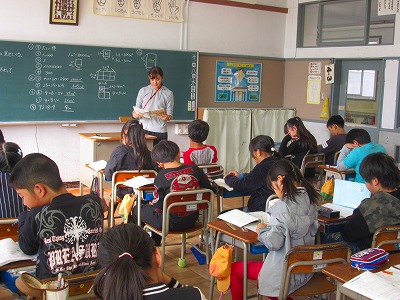 5年生がいくつかの面積の問題を解いていました。これまで学習したことを生かして速く正確に解くことを心がけていました。