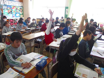 5年生が社会の学習で「福島第一原子力発電所の事故」について学んでいました。昨日の3月11日で丸7年が経過しました。地震の揺れや津波の被害による農産物や水産物への影響、周辺区域の人々の避難や立ち入り制限による今なお続く厳しい生活の状況について学んでいました。