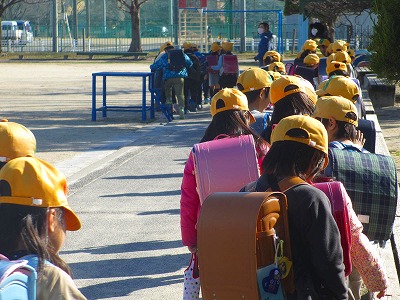 今日火曜日は、1・2年生が学年下校の日です。学年下校では、学校から離れるにつれ、少ない人数となっていきます。一人になっても安全をしっかり確かめながら、ルールを守って下校してくださいね。