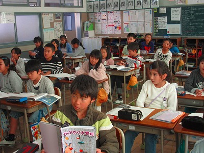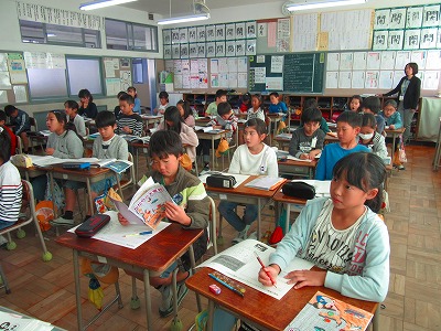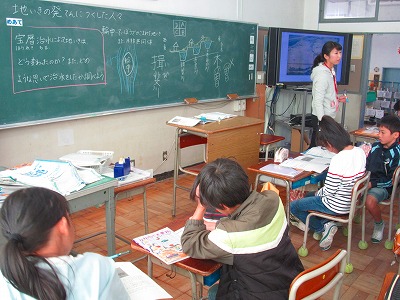 4年生が社会の学習で、江戸時代中期の薩摩藩家老であり、宝暦3年(1753年)の木曽三川分流工事(宝暦治水)の責任者であった平田靱負の偉業について学びました。大型テレビに映し出された画像を参考に、どれだけ大変な工事であったかを知ることができました。