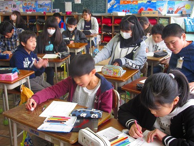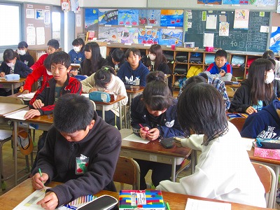 6年生が図画工作で「卒業制作」の作品のデザインを考えていました。この後、彫刻刀を使う作業となりますが、根気よく制作に取り組み、思い出の作品にしてください。
