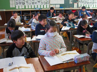 3年生がこそあど言葉と言われる指示語について学習していました。教科書に出てくる「その行列」「この人」「それなのに」などの言葉の「その」「この」「それ」は何を指しているのかをみんなで考えていました。