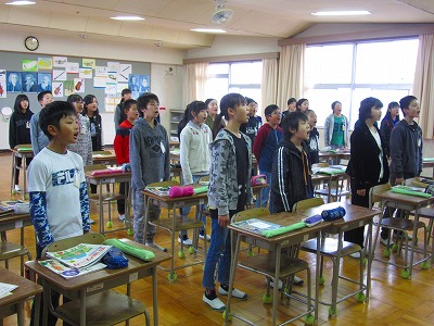 6年生が全校合唱で発表する「COSMOS」を歌っていました。♩=84と非常にゆっくりとしたテンポの曲です。ブレスをしっかりとして息をたっぷり吸い、息切れせずに美しいハーモニーを作り出してくださいね。