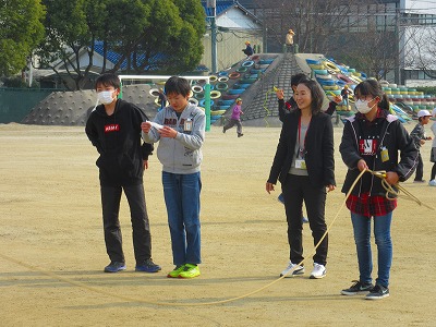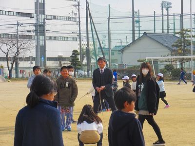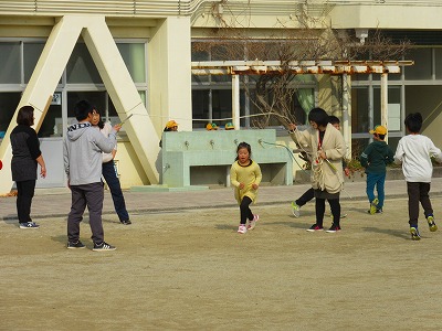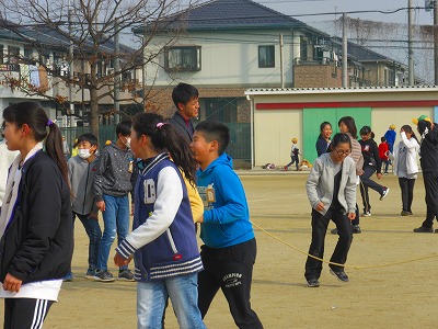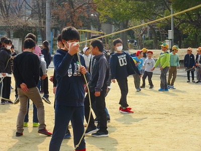 明日はいよいよ大なわとび大会です。昼休み、担任教師も加わってどのクラスも練習に励んでいました。みんなの気持ちがつながって、どのクラスも最高記録が出せるとよいですね。