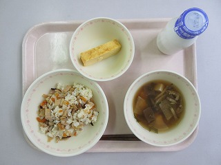 今日は食育の日です。JAあいち海部から三つ葉を購入し、けんちん汁に使用しました。根三つ葉は1月ごろから旬を迎え、愛西市でも八開、佐織地区で生産されています。三つ葉の香りを味わえるように、お汁の味はシンプルにしました。