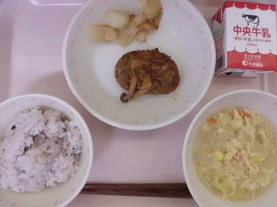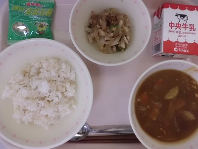 今日の給食の献立にも、目の健康によい栄養素を取り入れました。にんじんやかぼちゃに含まれる「カロテン」という栄養素、ブルーベリーに含まれる「アントシアニン」という色素が目の健康に関わっています。