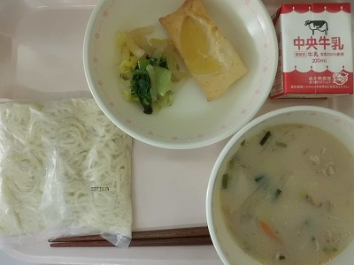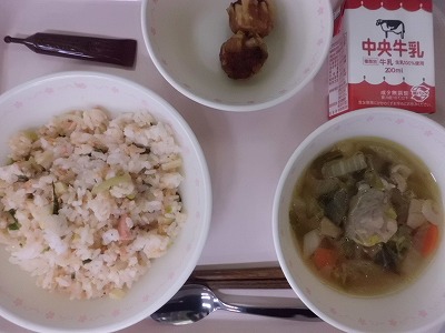 ツナとにんじんのごはん 牛乳 愛知の野菜入り肉団子 かぼちゃほうとう