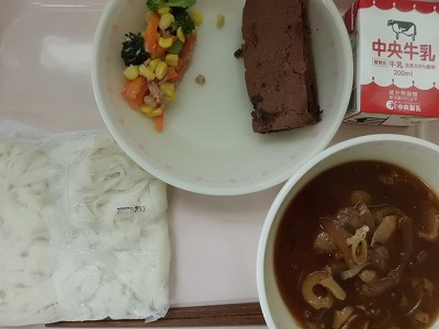 きしめん 牛乳 肉みそきしめん ブロッコリーサラダ 手作りチョコケーキ
