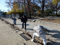 7日(日)におやじの会の活動がありました。今回は側溝掃除と落ち葉拾いです。側溝は運動場の土がしっかりたまっていて、掘り起こすのが大変でした。落ち葉拾いも大量にありましたが、おやじの底力で、側溝の土も落ち葉もきれいになりました。本当に本当にありがとうございました!