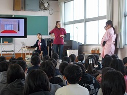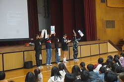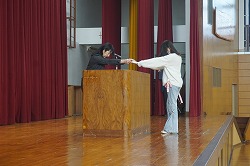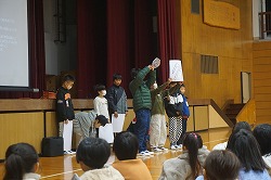 4年生からは総合的な学習の時間に学んでいる防災についての発表がありました。伝えたいことを劇化し、クイズを通して、防災への正しい知識を全校児童に伝えました。4年生のみなさん、お疲れさまでした!