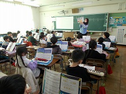 1年3組は音楽の時間に鍵盤ハーモニカで「すずめがちゅん」を演奏しました。どの子も教科書を見ながら、楽しく演奏していました。鍵盤ハーモニカ演奏が上手になりましたね。
