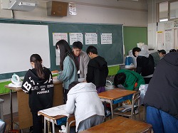 1人目はいろいろな歴史にふれることのできた修学旅行について発表しました。朝の散歩で本能寺に行き、教科書で学んだ歴史が身近に感じられたそうです。