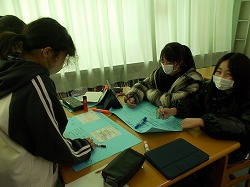今日は己書を学びました。自分たちの書きたい言葉を事前に考え、その言葉を己書の講師の皆様にお手本を書いていただき、そのお手本を参考にしながら一人一人が個性的な己書を完成しました。グループごとに講師がつき、丁寧な指導を受けながら、己書を楽しみました。講師の皆様、本日は温かなご指導ありがとうございました。