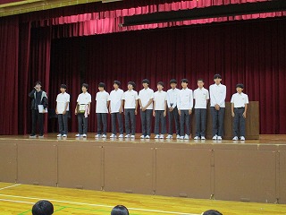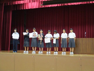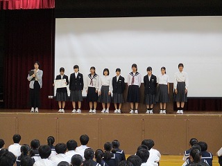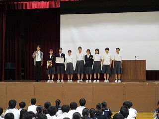 、秋の新人戦など部活動の表彰披露が行われました。次