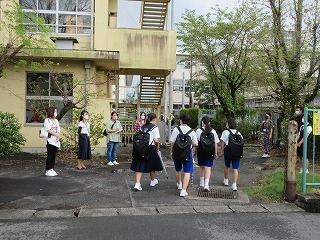 天候が心配されましたが、PTA社会育成部による「あいさつ運動」が行われました。