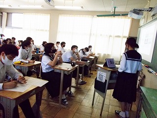 先日、2年生はzoomを使って、上級学校訪問を行いました。そのまとめをロイロノートを使って、各自がまとめ、みんなに発信しました。