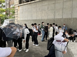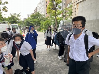 訪問を終えた子どもたちは、上野公園に集合し、タブレット端末を活用した「まち探」へと出かけました。定番の観光スポットで記念写真を撮ったり、芸能人に出会ったりするなどしていました。また、スカイツリーへと向かう途中、急な雨と雷によって高架下などで雨宿りをするグループがありましたが、先生と連絡を取り合いながら指示を受けながら、冷静に行動してます。