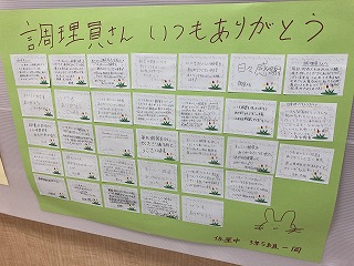 私たちが毎日、お昼にいただいている給食が、どこで、誰が、どのように作ってくださっているのかを見学させていただきました。「すごく大きな鍋で作っていて、しゃもじもすごく大きかった」「調理員さんたちが手を振ってくれてうれしかった」「今日の給食は特別においしかった」など、うれしそうに報告してくれました。お忙しい中、給食センターの皆様が、とても温かく、丁寧に対応してくださり、心より感謝申し上げます。