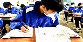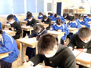 毎回、初日のテストが終わると「あの問題を間違えた」「時間が足りなかった」「もう今回のテストはおわった」と落ち込んで帰る人が少なくありません。しかし、初日がどのような出来であったとしても明日のテストは確実にやってきます。今日は、帰ったら明日のテストの最終確認をし、体調を万全にして明日のテストに挑んでください。「今やれることをやるしかない」のです。「2年生最後のテストを突破しろ!!」(2年通信「突破」より)