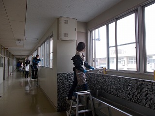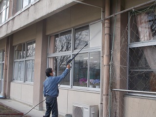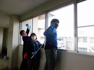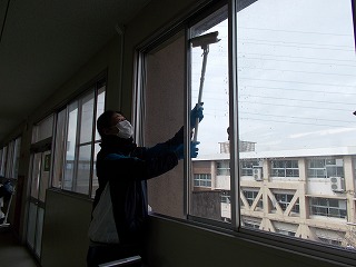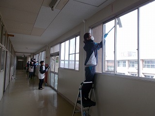 修了式を前に、本日、大掃除を行いました。5時間目から保護者、地域のボランティアのさんが参加してくださり、普段は危険なためできない2階、3階の窓を中心に磨いてくれました。お世話になった校舎に感謝して卒業生が、次年度お世話になるからと新入生が参加してくれました。教員も高圧洗浄機で一気に1階の窓の汚れを吹き飛ばしてくれました。佐屋中学校はみんなの手でぴかぴかになりました。ありがとうございました。