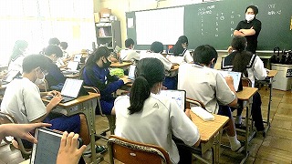 「SDGsの17の目標を確認しながら、具体的な企画を考えています。(3組)」「学級のリーダーを中心に、企画の具体的な内容や役割分担について話し合いました。(1組)」「SDGsについて、理解を深めて、生徒それぞれの視点から企画案を考えています。(4組)」「SDGsの17を分類して、学級で何が取り組めるのかを考えました。(2組)」(2年通信「ミライ」より)