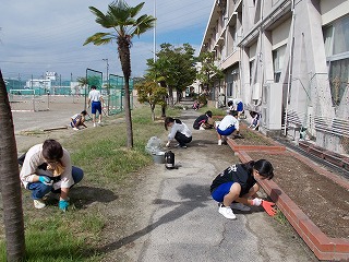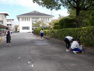 「学校を私たちの手でよくしよう」と、PTA社会育成部が校内の環境整備を計画してくださいました。全校生徒、保護者にボランティアを募ったところ、160人を超える参加がありました。手洗い、マスクや事前に場所の割り振り等の対策をして実施しました。本日は天候にも恵まれ、45分間という短い時間ではありましたが、校内の隅々まできれいにしていただきました。帰るときに「ありがとうございました」と言って帰る生徒の姿も見られ、うれしい気持ちが倍増しました。