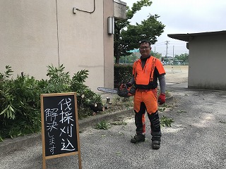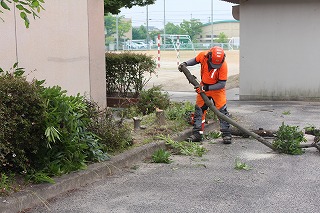 南館前に花壇がありますが、西南の角と体育倉庫の間が狭く、運動場に避難する際、混雑してしまうことが反省であがり、さっそく樹木の伐採をしていただきました。ありがとうございました。