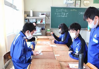 3月17日(水)に学年レクを行いました。12月の「学校アンケート」で「学級をこえた交流がしたい」という意見をふまえて、コロナ対策をした上で、実施できる競技を企画委員が考えました。運動場で借り物競争と「逃走中」。校舎内で「宝さがし」を行いました。1年生のみの学校で思う存分、楽しみました。