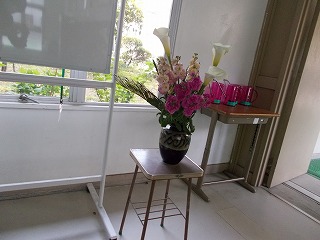 本日、新3年生が登校し、明日の入学式準備をしてくれました。笑顔で働く姿を見て、すがすがしい気持ちになりました。また、昨夜は、地域の方が入学式・始業式に向けてお花を生けに来てくれました。今年度も、地域の方に支えられてスタートしました。ありがとうございます。