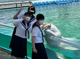 八景島シーパラダイスでは、シロイルカに触れたり、お土産を買ったりと笑顔がいっぱいです。また、昼食は、バーベキューや中華料理を皆で囲みながら楽しく会食しました。