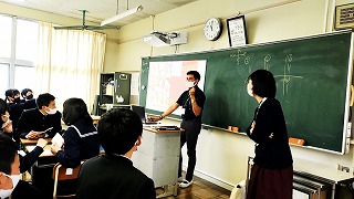 今年度から、各教室にプロジェクタが整備されました。各教科や学活の授業では、教員もどのように使えるのか、工夫をしながら活用しています。各教室でどのように使われているのか紹介します。「英語の授業では、みお先生とALTのマイキー先生とイングリッシュクイズを行いました。先生自作のプレゼンを見ながら、クイズに答えるというものです。マイキー先生のテンポの速い英語をしっかり聞いて、グループで答えを考えて発言しています」「国語の授業では、蒔田先生が『アイスプラネット』の授業を行いました。国語辞典を黒板に映して本文の読み取りを進めています」「学活の様子です。授業以外にも、学活や道徳など、学校生活のあらゆる場面で、プロジェクタ、タブレットの活用を進めていきます。既に小学校では使われてきたということなので、佐屋中でも機器の導入によって、これまでとは異なる学習ができないか、工夫していきたいと思います」(2年通信「ミライ」より)