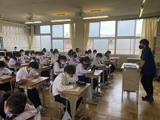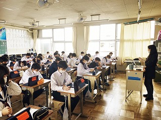 学級担任をシャッフルして、授業を行いました。生徒も先生もちょっぴり新鮮な気持ちと、心地よい緊張感が感じられました。