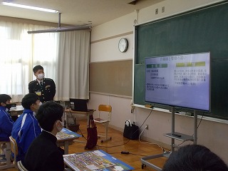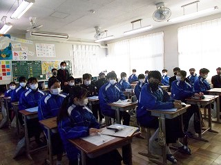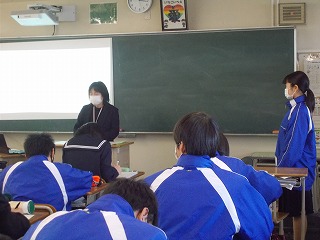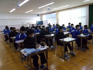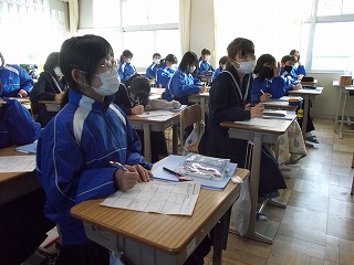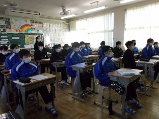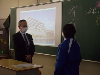 本日は、様々な職業から6名の講師をお迎えし、仕事の内容や1年生が疑問に思っていることなどを伺いました。「子どもが仕事に対して夢をもてないのは大人の責任である。夢が膨らむようにしてあげたい」と、講師の皆様は、それぞれの仕事の魅力を熱く語ってくださいました。生徒たちは、緊張しながらも興味津々で話を聴いていました。