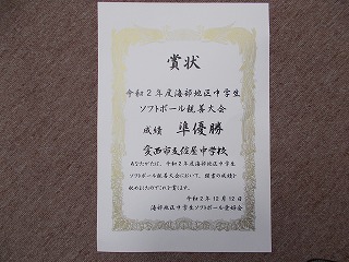 本日の朝礼で、野球部、ソフトボール部の大会入賞等の紹介を行いました。野球部は「愛知県知事杯」ベスト8、ソフトボール部は「海部地区中学生 親善大会」準優勝でした。練習、試合等の実施が難しい中、どの部活動も感染症拡大防止対策を考えて、しっかり活動しています。