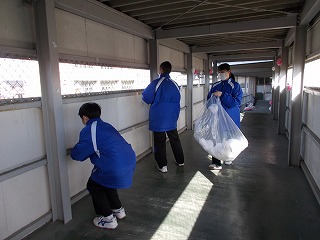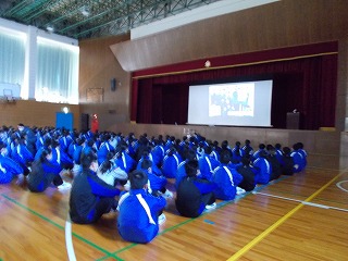 今年度の3年生を送る会は、生徒会を中心に何度も計画を練り直し、映像を使って思いを伝えることになりました。1年生はフリップ等を使って、2年生はドミノ倒しでメッセージを伝えました。また、部活動ごとにも先輩へ感謝の気持ちを伝えました。その他、思い出の写真で3年間を振り返ったり、転勤された恩師からビデオレターが届いたり、3年職員がサプライズ企画をしたりと、1時間があっという間でした。会場から外に出ると、1、2年生からお祝いのメッセージボードが、渡り廊下は花道が作られていました。生徒会役員の皆さんから「3年生が喜んでくれてやってよかったと思いました」「誰かのために何かをするという経験ができてよかったです」「3年生の人たちから『ありがとう』と声をかけられ、すごくうれしかったです」「また、みんなのために何かしたいです」という言葉が聞かれました。