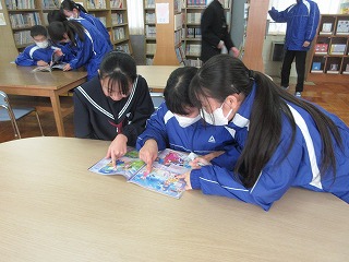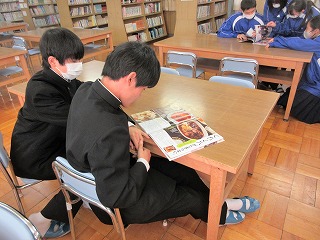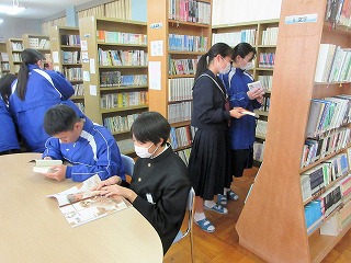 昼休みの時間には、図書委員により図書室がオープンされています。読書好きな生徒や調べものをする生徒などが集まってきます。