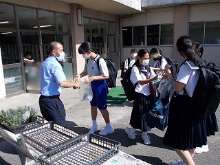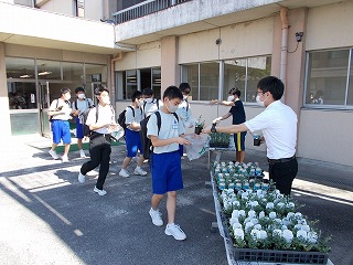 愛知県花き農家支援事業の一環で、愛西市役所産業振興課より、生徒一人1ポットの苗をいただきました。家にいる機会が増えた今、花を楽しむゆとりをもちたいです。
